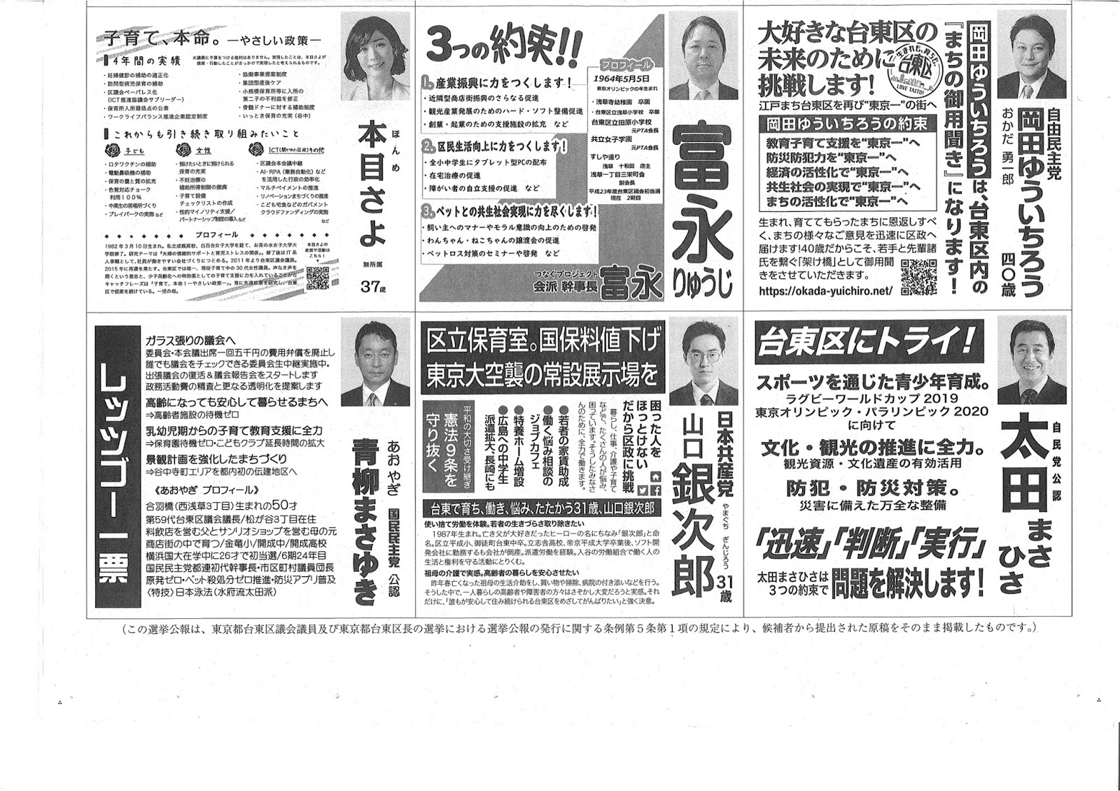 現職で台東区議会自民党および台東区議会公明党ほか推薦